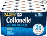 Cottonelle Ultra Clean Toilet Paper with Active CleaningRipples Texture, Strong Bath Tissue, 24 Family Mega Rolls = 132 Regular Rolls (4 Packs of 6)